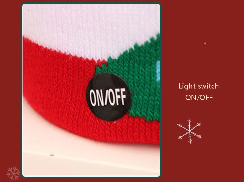 Name | Knitted Christmas hat with light | Material | Acrylic ++ lamp (customizable) | |||