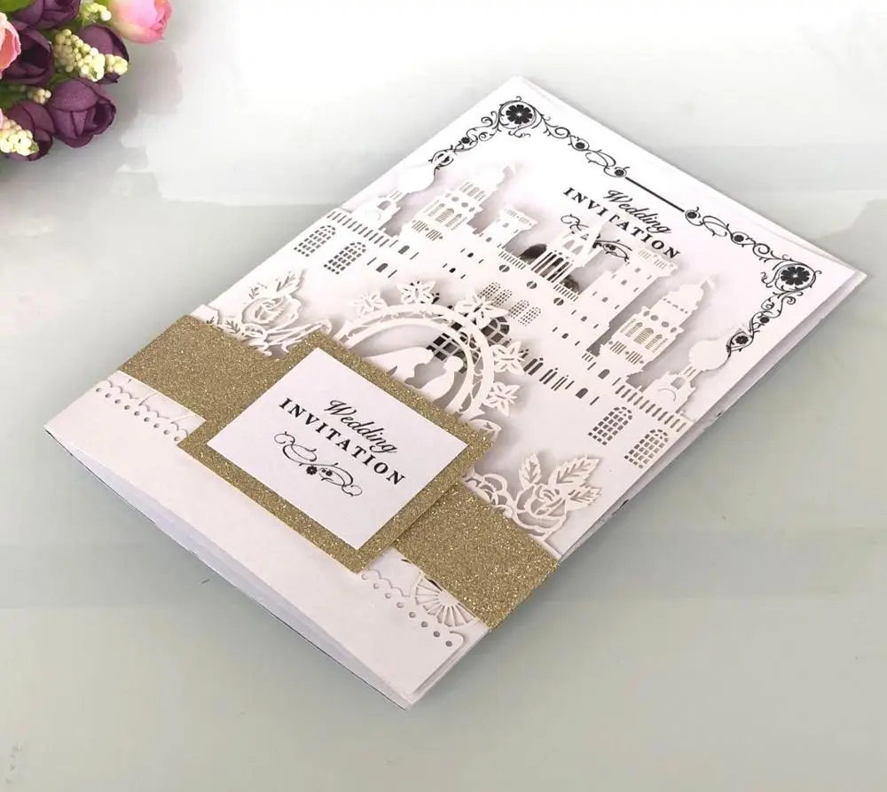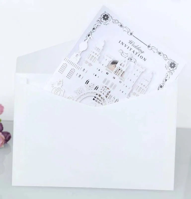Wholesale Castle Carriage Wedding Cards Cutout Design Greeting Cards With Envelope