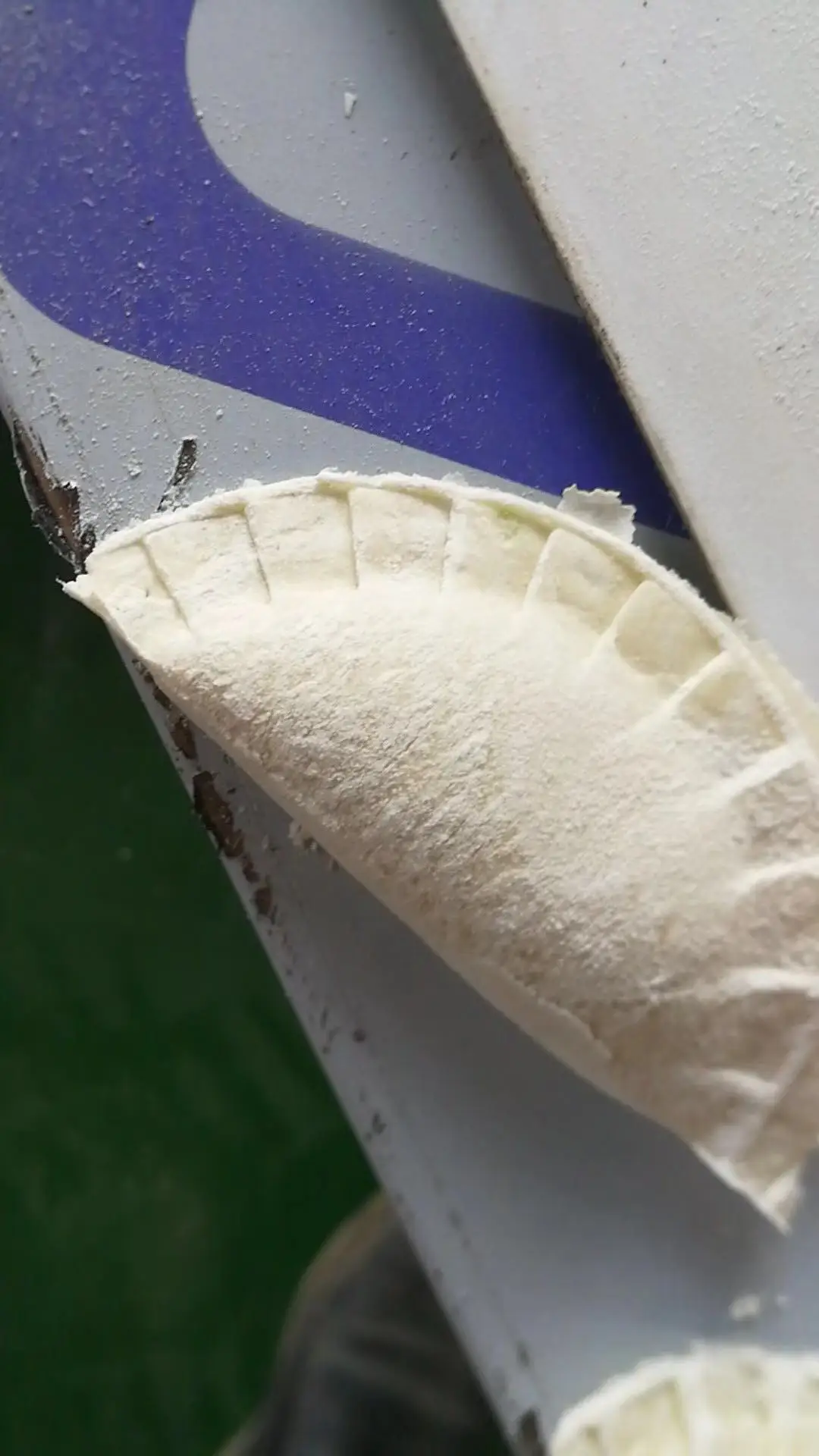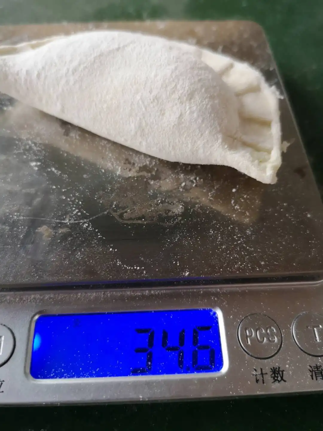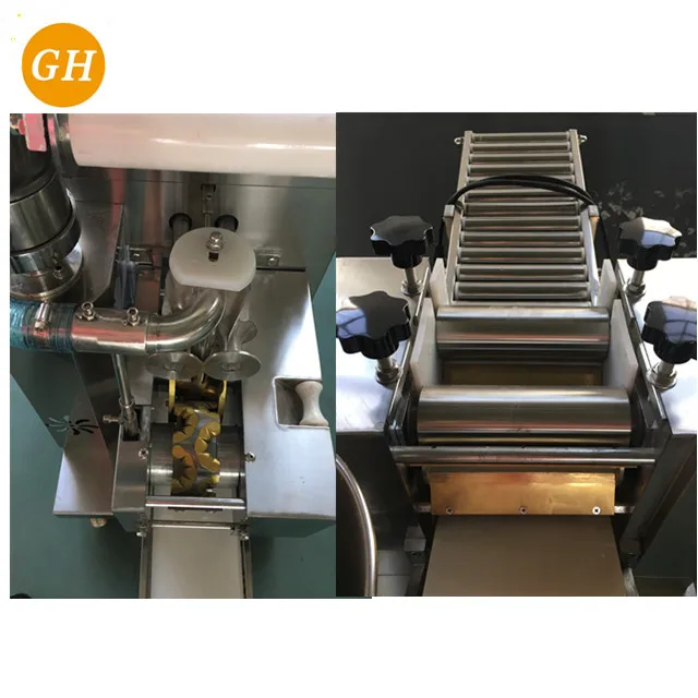 1 Through the use of multi-channel roll dough pressed into dough, having a thin, large amount of water (48% water), gluten without any damage, elastic dough, taste good, chewy, handmade dumplings identical.