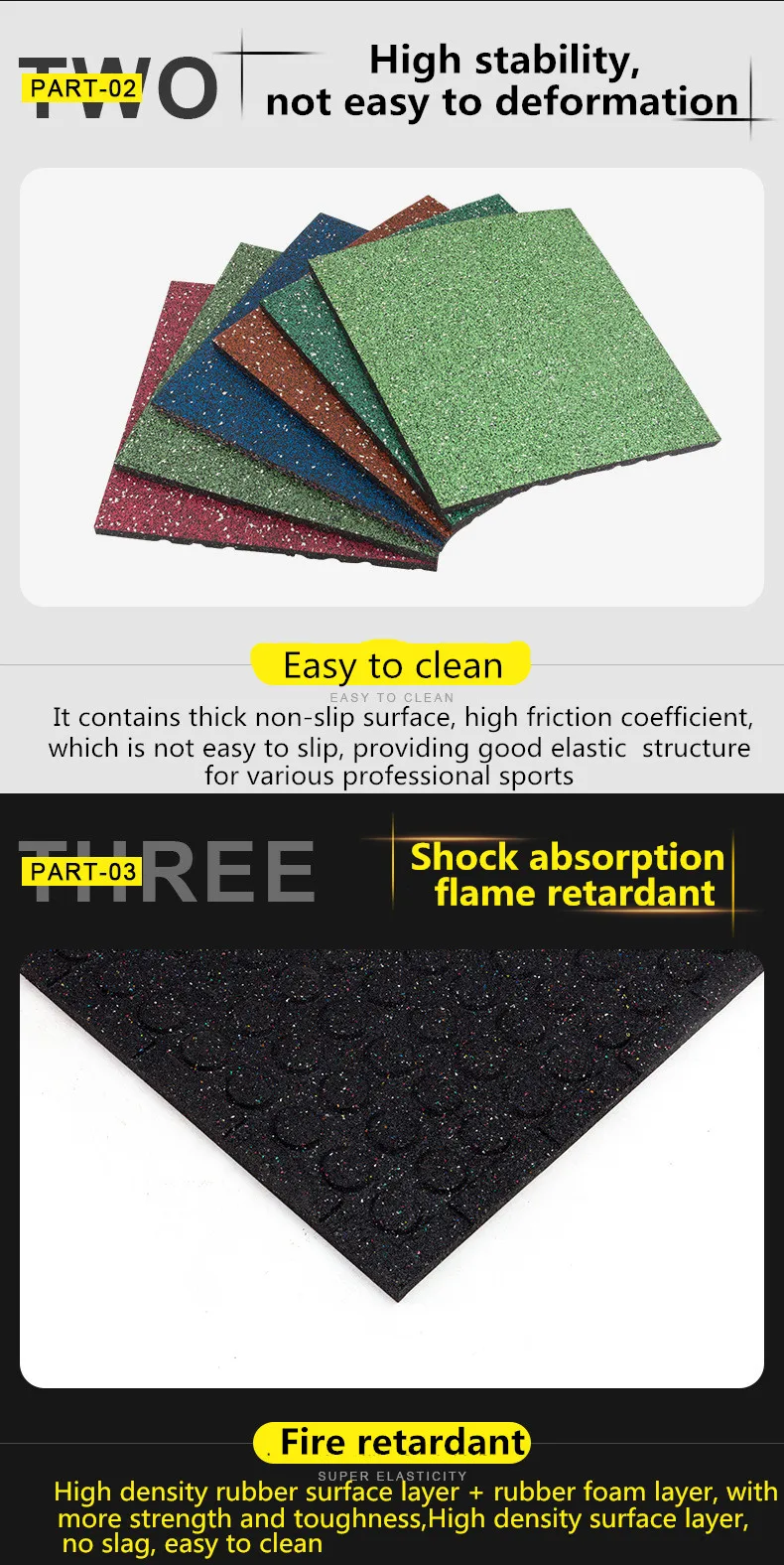 1000mm*1000mm*thickness(15mm/20mm/25mm/30mm) | Underlayer-Black Rubber Granules | ||||
