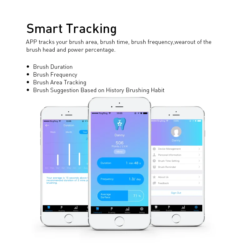APP tracks your brush area, brush time, brush frequency,