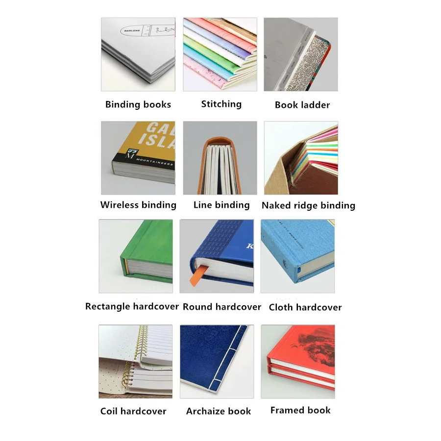Binding | Casebound binding, paperback binding, sewing binding, perfect binding, flexi-bound binding, Saddle stitch binding, wire-o binding, Spiral binding, glue binding, pad binding,etc. |