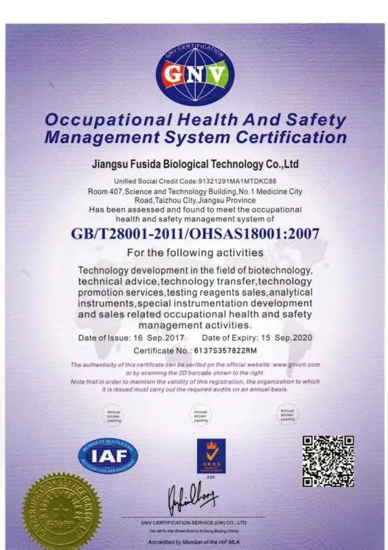 FUSIDA is a professional bio-tech products manufacturer,and a Specialist in the development, manufacture, and marketing of veterinary point of care diagnostic instruments and consumables as well as animal disease diagnostic detection . Our aim is to supply qualified products and services to our customers for better health care .We pride ourselves in owning state-of-the-art production lines, technical expertise, R & D ability and in the manufacturing process is supported by our highly-skilled R & D team , all of FUSIDA products have been manufactured at fully automated facility in accordance with ISO 9001.