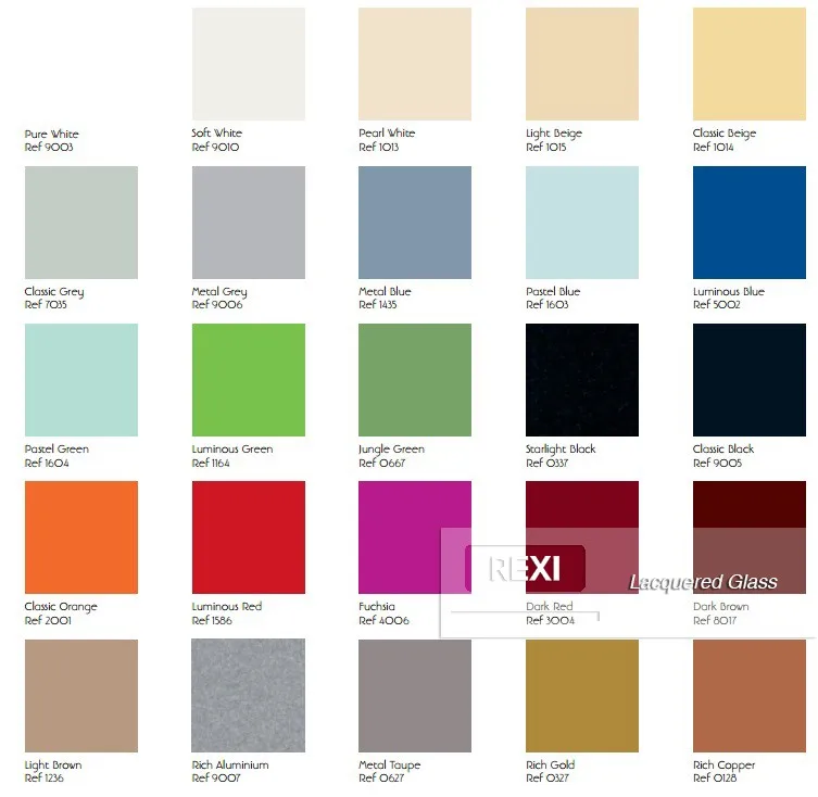 REXI Lacquered Glass Back Painted is made by the top quality clear float or ultra-clear float glass, through depositing a highly durable and resistant lacquer onto the flat and smooth surface of the glass, then by carefully baking into furnace which is constant temperature, permanently bonding the lacquer onto the glass.
