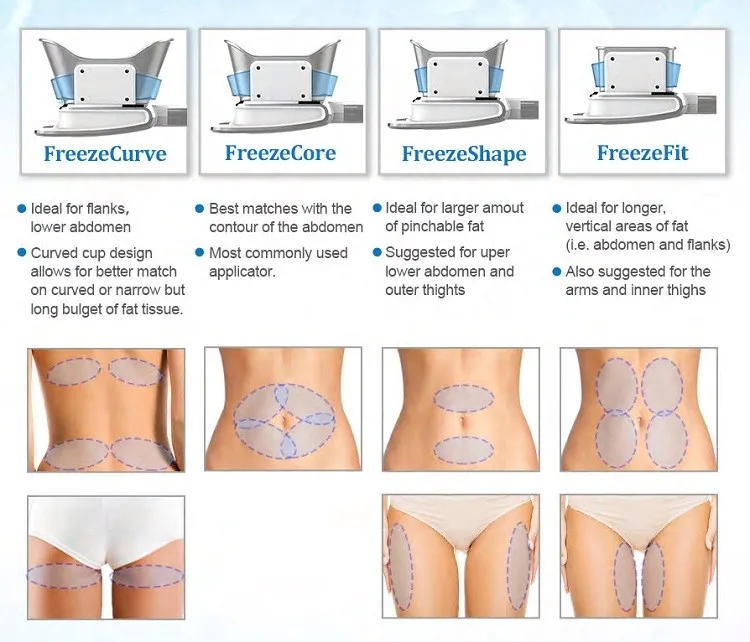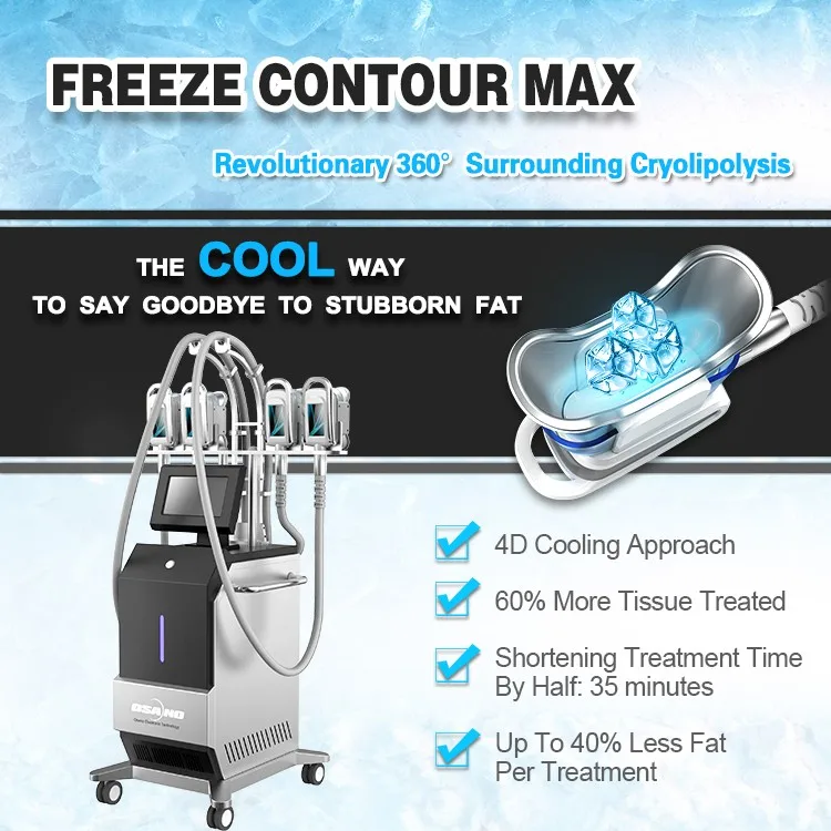 • The innovative all-dimension surrounding cooling applicators maintains more stable cooling temperatures and it reduces one third of the normal treatment time(60 minutes)involved in old an traditional treatments can be saved by FREEZE CONTOUR MAX handpiece.