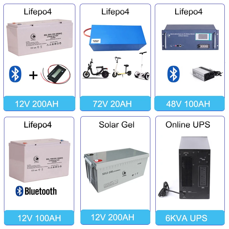Our main business produts are Lithium ion Lifepo4 Battery , Solar Gel / AGM Battery, Online/Offline UPS Power Supply, Lithium Battery Charger, OPzV&OPzS, Off Grid Solar System, Inverter, Custom size color logo and other details are welcome.
