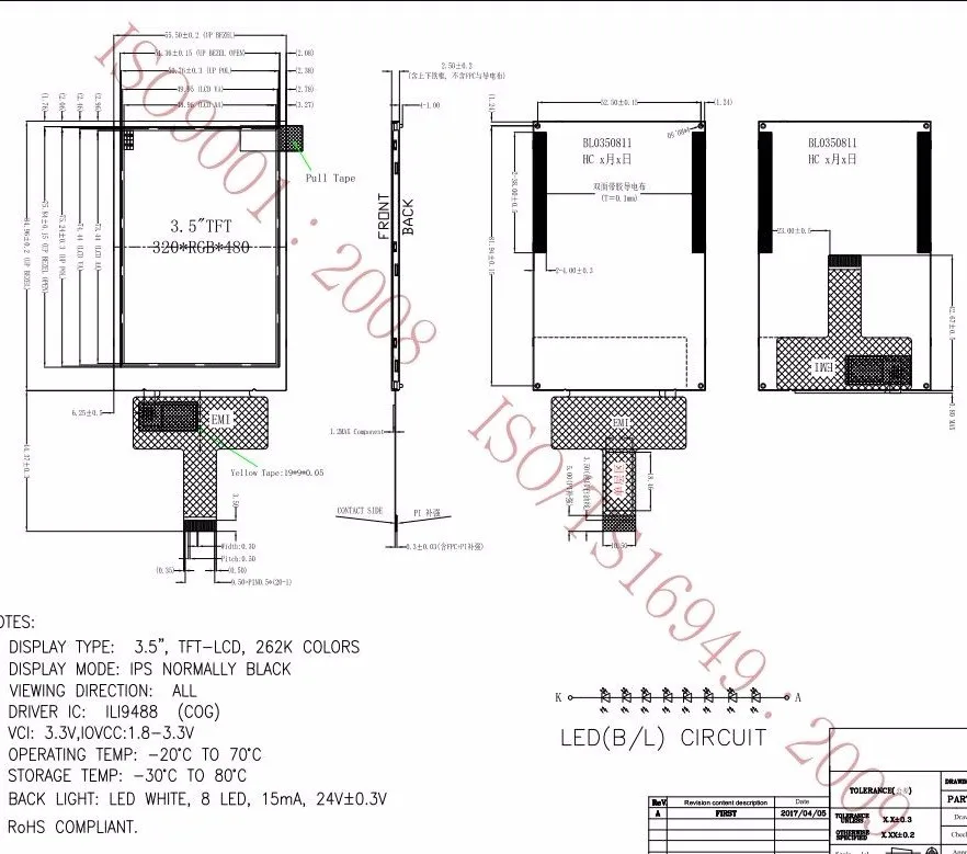 *3.5inch tft lcd module +ips view all + touch panel