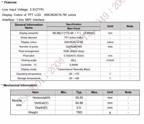hIC driver: | ILI9488 |