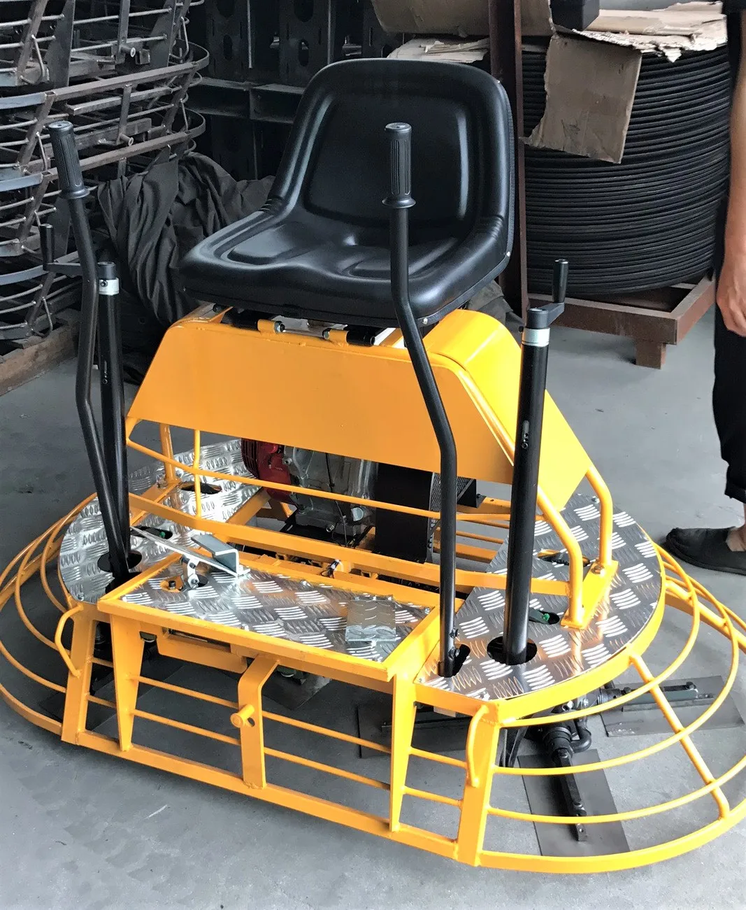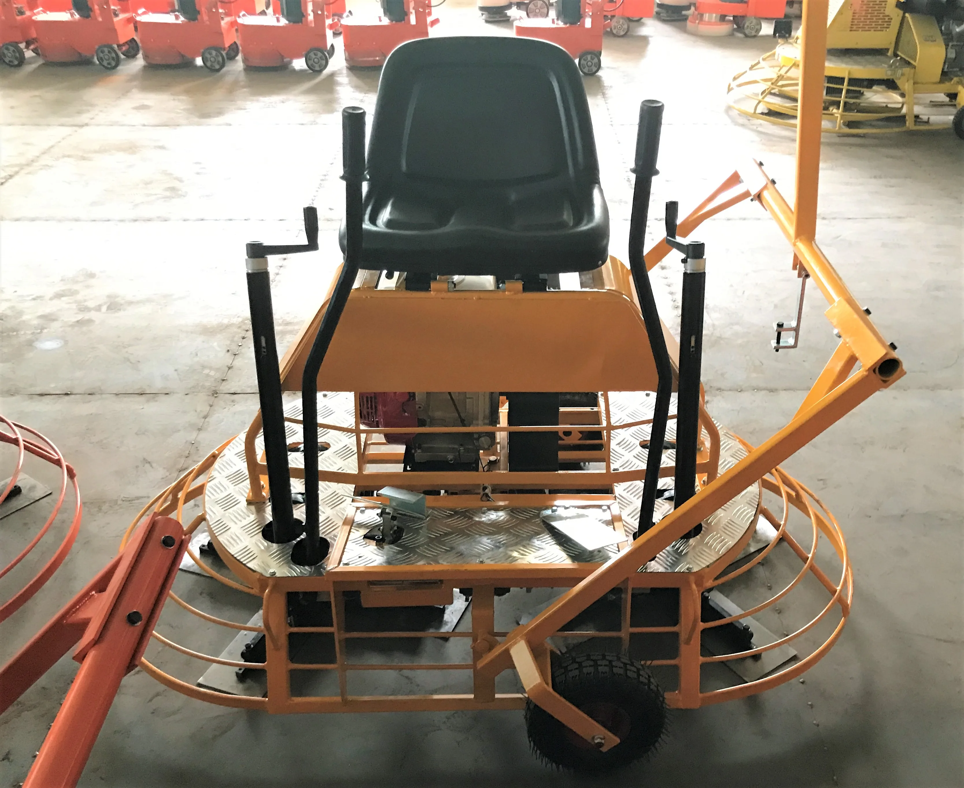 Ride-on type concrete trowel machine could greatly reduce labor intensity, improve work efficiency, the construction efficiency is 5-8 times of that of the ordinary wiping machine. Single person operation, reduce construction cost.