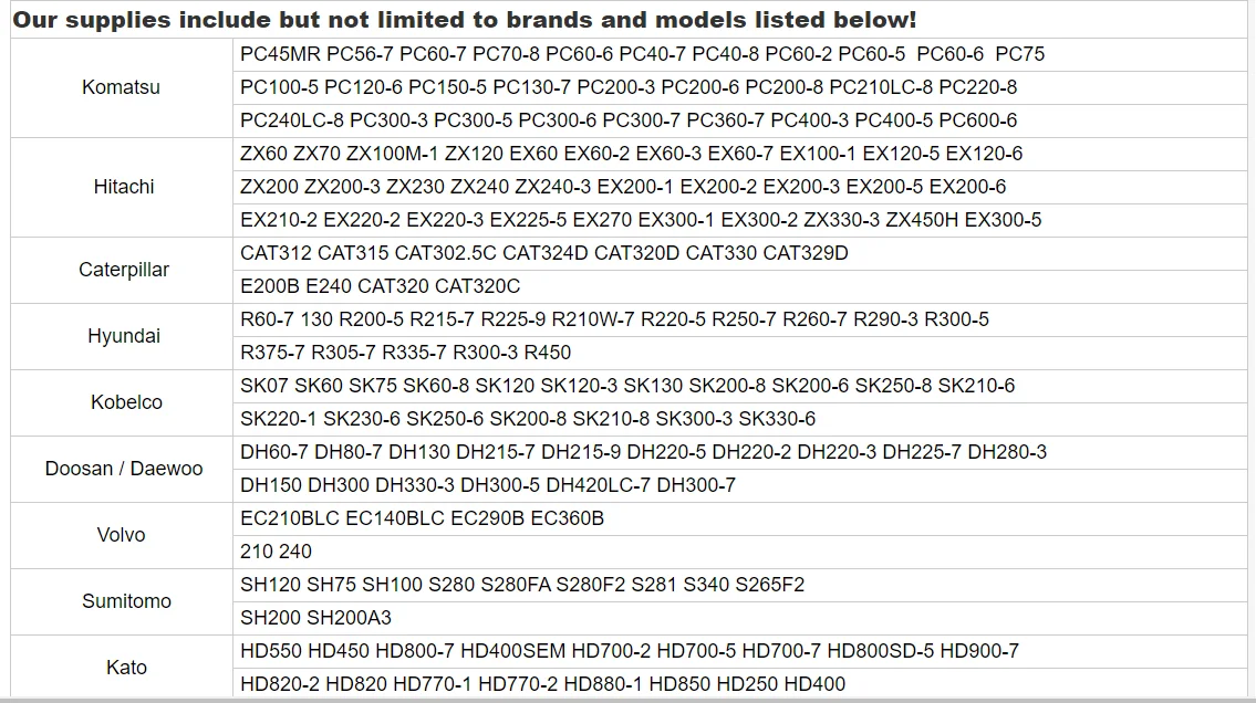 Application: | caterpillar hitachi Kobelco sumitomo Hyundai Daewoo Kotmasu | ||||||