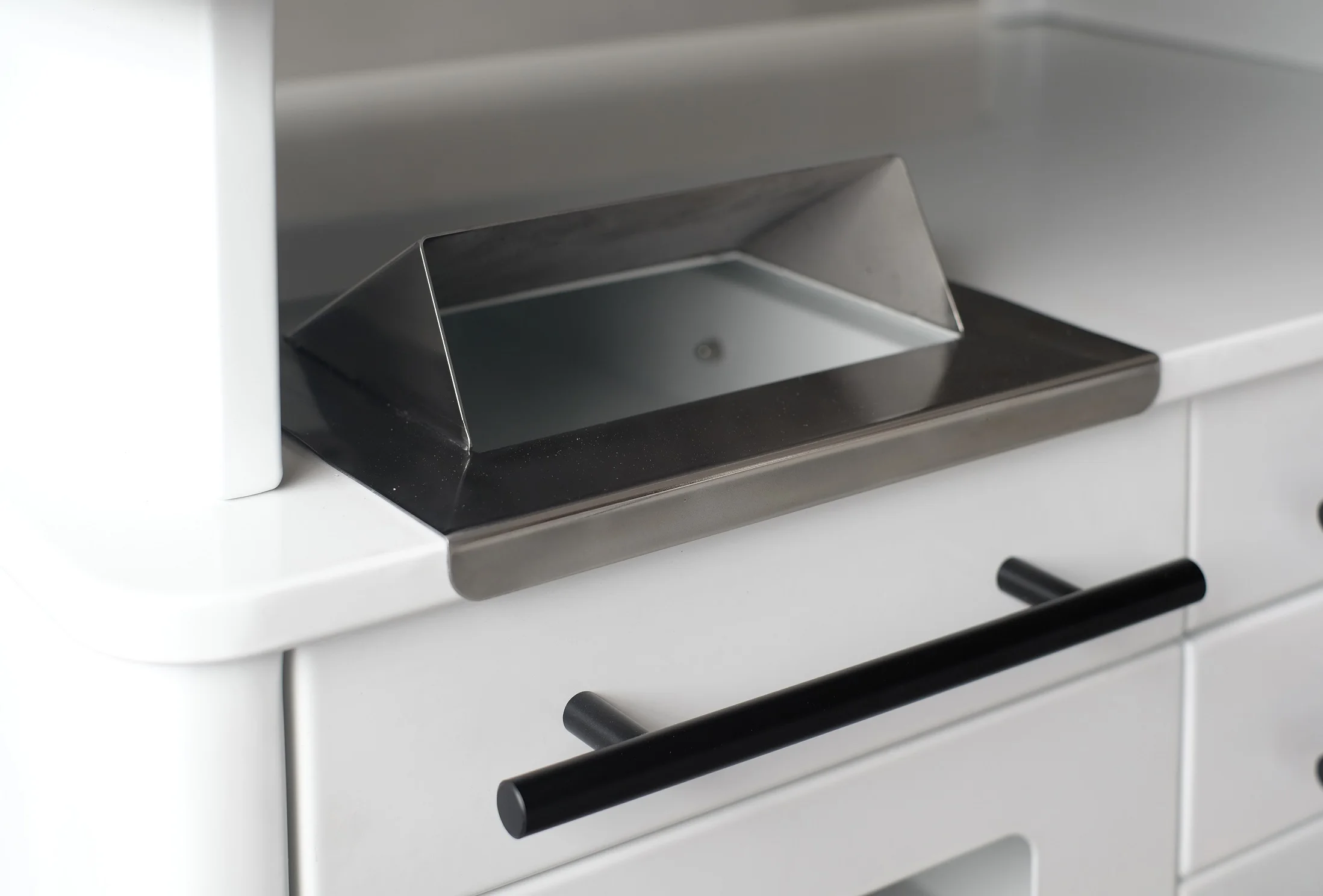 One stainless steel drawer with with freely divisible slots.