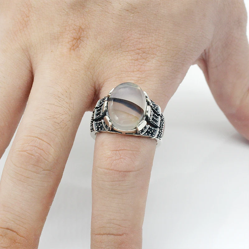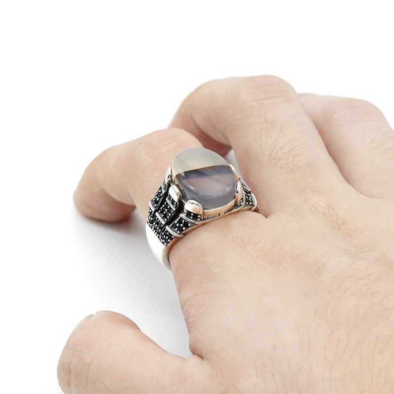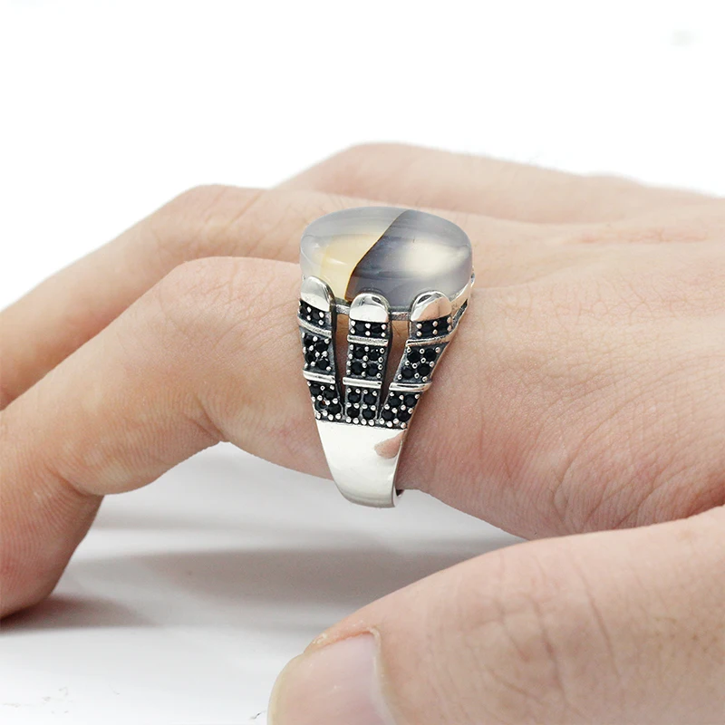 Product Name | 925 Sterling Silver Natural Textual Agate Stone Men Ring |