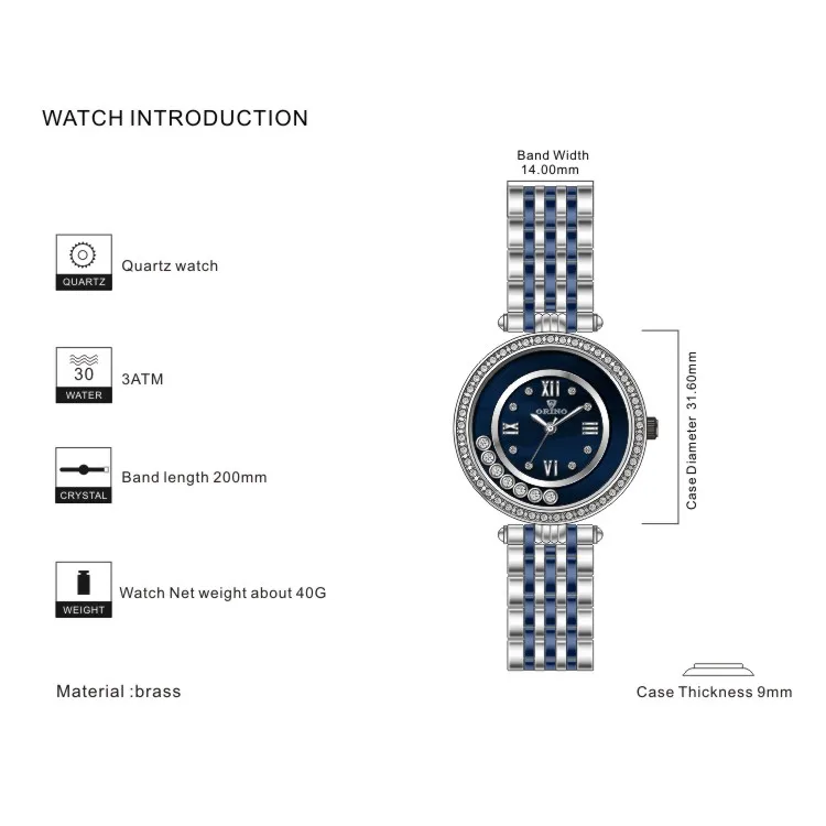 3ATM Water Resistance Mineral Glass Brass Woman Rolling Fashion Wrist Watch