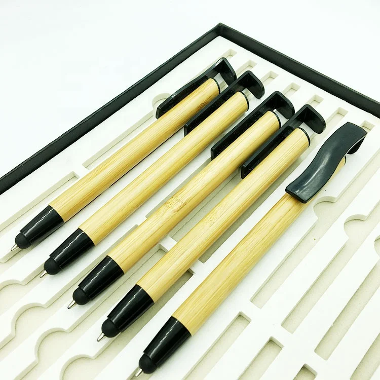 Promotional executive rubber tip capacitive laser bamboo pen stylus for iPad