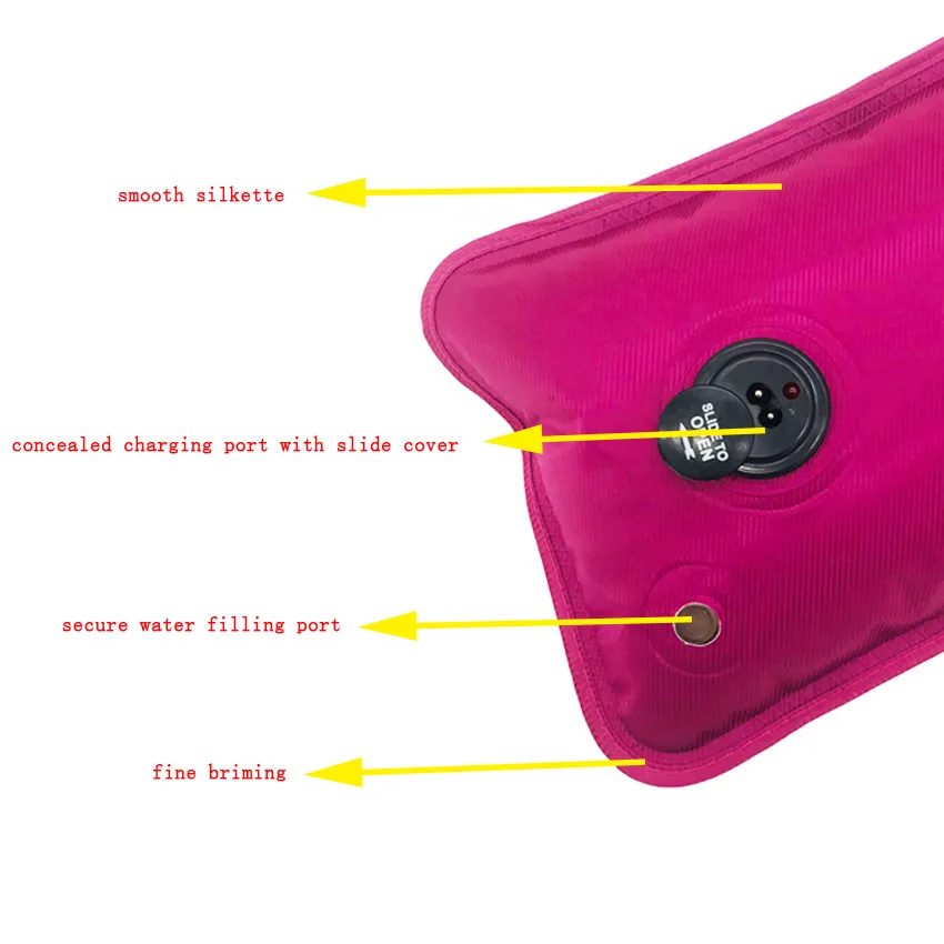 Heat therapy is characterized by the application of warm compresses to the body as a natural remedy for the relief of pain and a renewed sense of health. Coming in the shape of electric hot water bag,it combines advanced medical plastic and high strength composite fiber,which provides a fast,convenient and stable way of heating. It is not only a warm-keeping apparatus,but also ideal for heat therapy. It can help easy pains such as toothache,arthrithis,headache,back and neck pain,chilblain etc.