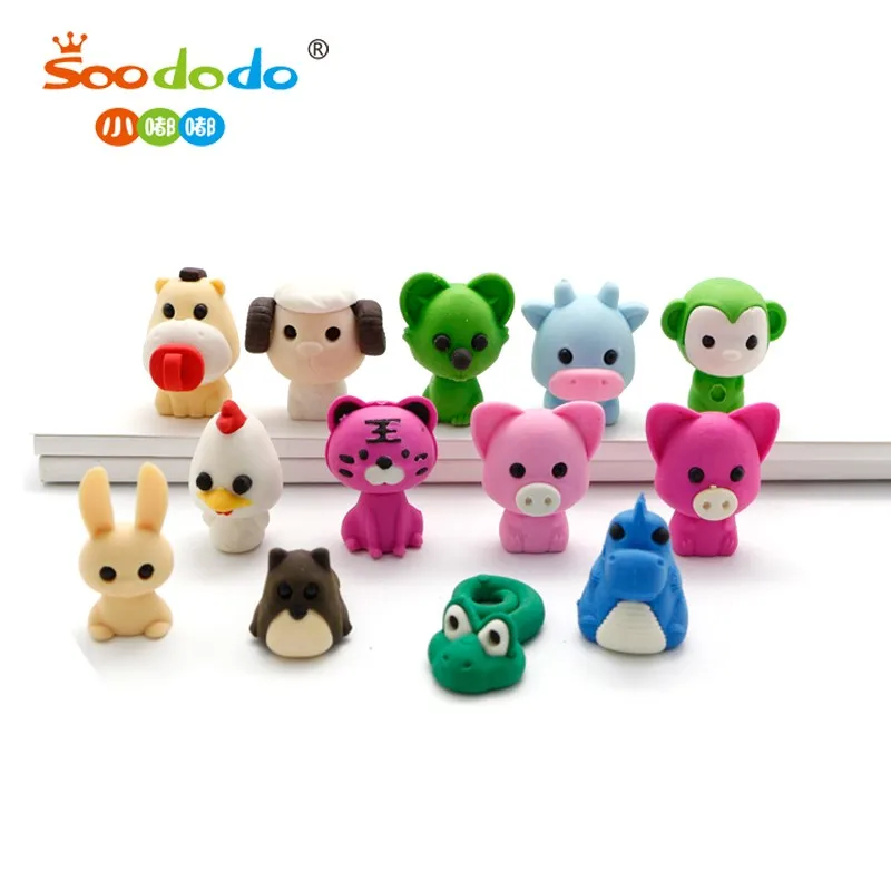 Cartoon Creative School Supplies Chinese Zodiac gift Pencil Topper Animal Eraser | ||||||