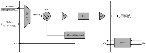 3. It can be received in an optical fiber with 47~2600MHz satellite and CATV digital and analog signals.