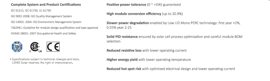 Voltage Temperature Coefficient | -0.270%/K | Maximum System Voltage (V) | DC 1500 (IEC/UL) | ||