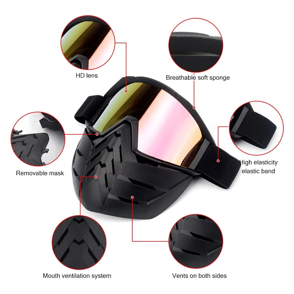 Visor Helmet With Goggle Open Sheet Face Mask For Motorcycle Bike Motocross Retro Collagen Face Mask Lift With Vintage