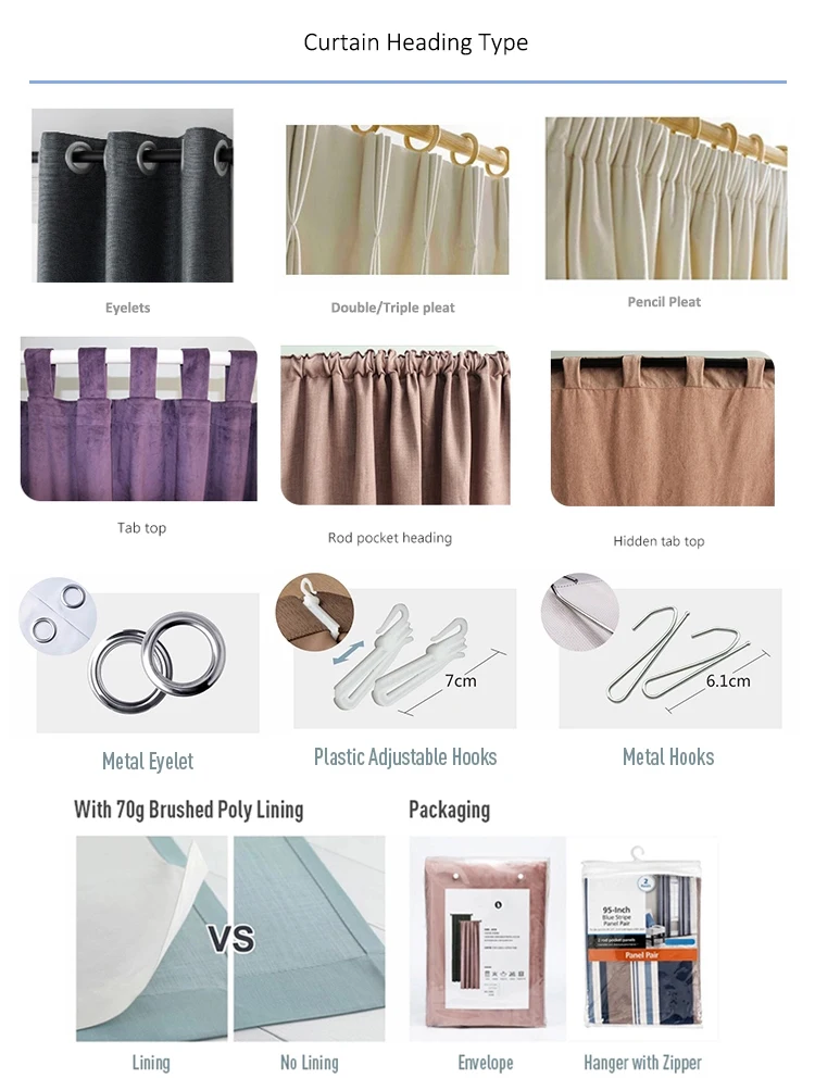 Decoration: | Eyelets,Grommet, pencil pleat,tabs or tiebacks |