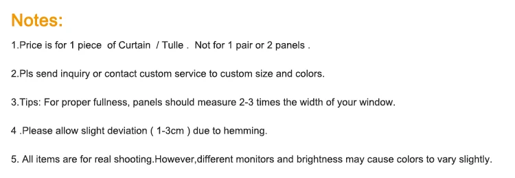 Packaging | 1. For ready made curtain: 1pc/polybag,12pcs/ctn, 20pcs/ctn, or custom packaging 2.For fabric:40-60 meters per roll, or rolled on strong tube inside,packed into plastic bag with PVC bag outside. 3.Custom Packaging as per customer's request |