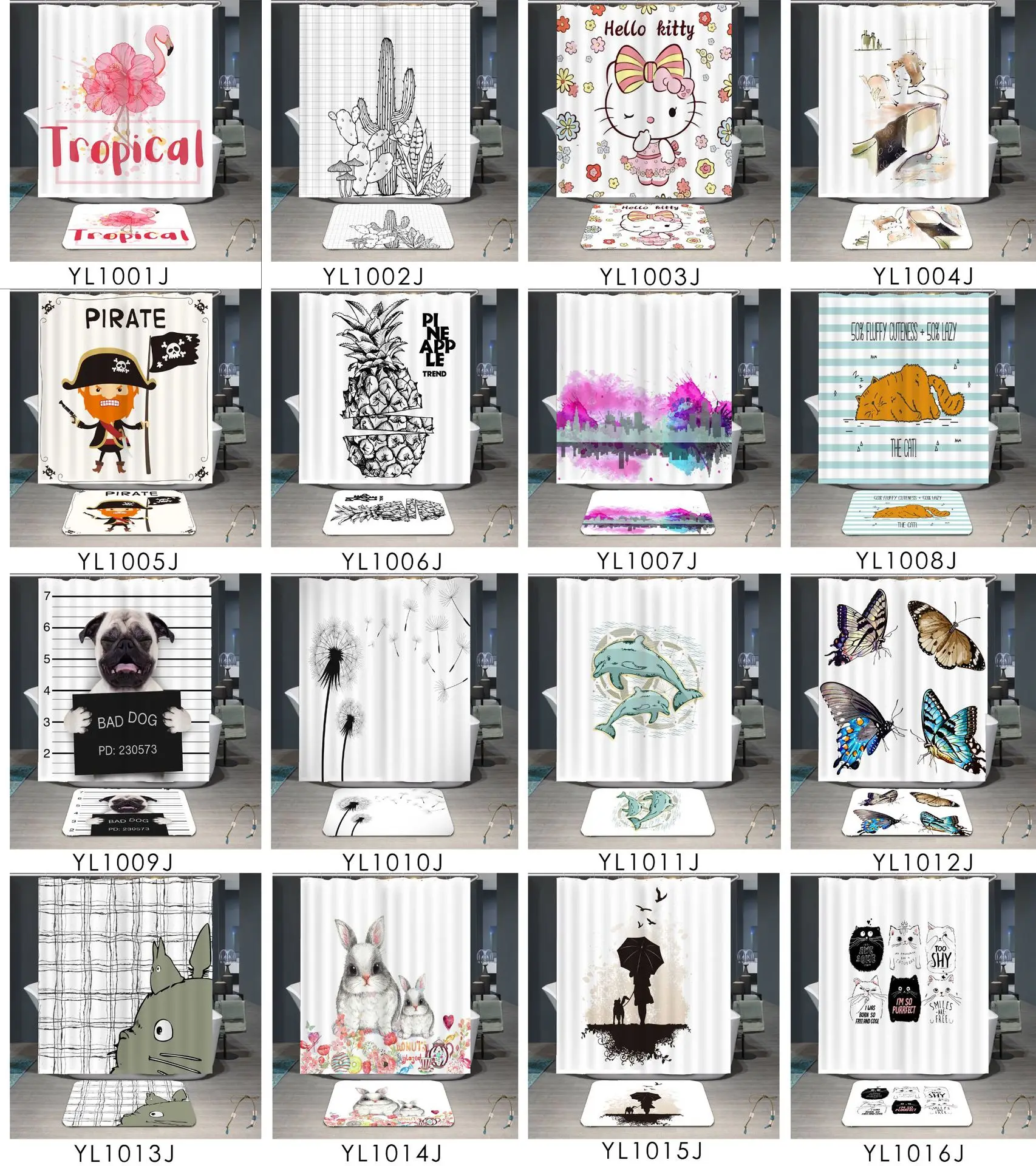 The 100% Polyester 3D Digital Printed Cartoon Cat Shower Curtain from China