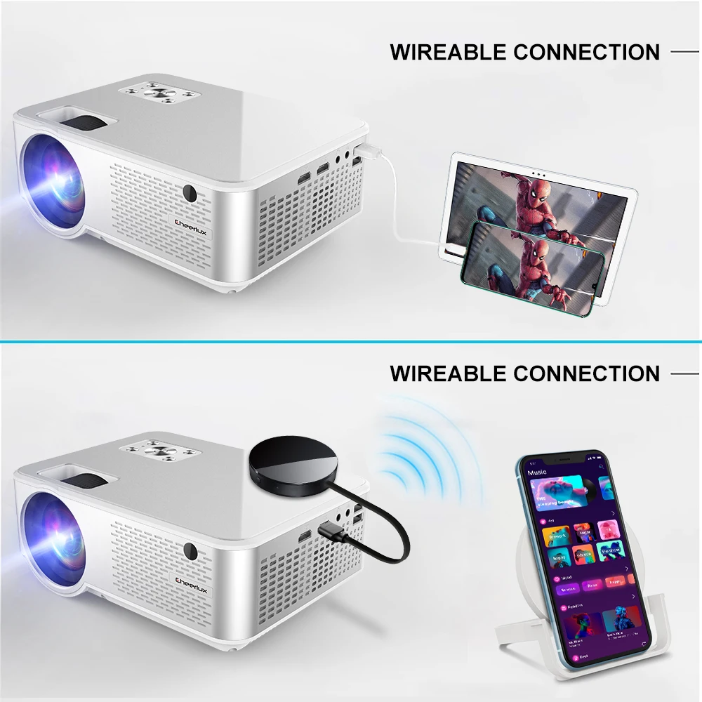 Cheerlux Home Theater HD 720P LCD Wifi Pico Projector Mini Mobile Portable Proyector Beamer C9 Mirroring Screen