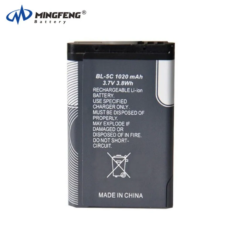 Product Name | 1020mAh BL-5C Battery For Nokia 100% New Battery BL-5C For Nokia C2-01 2700C N71 6030 6681 3110C 1020 |