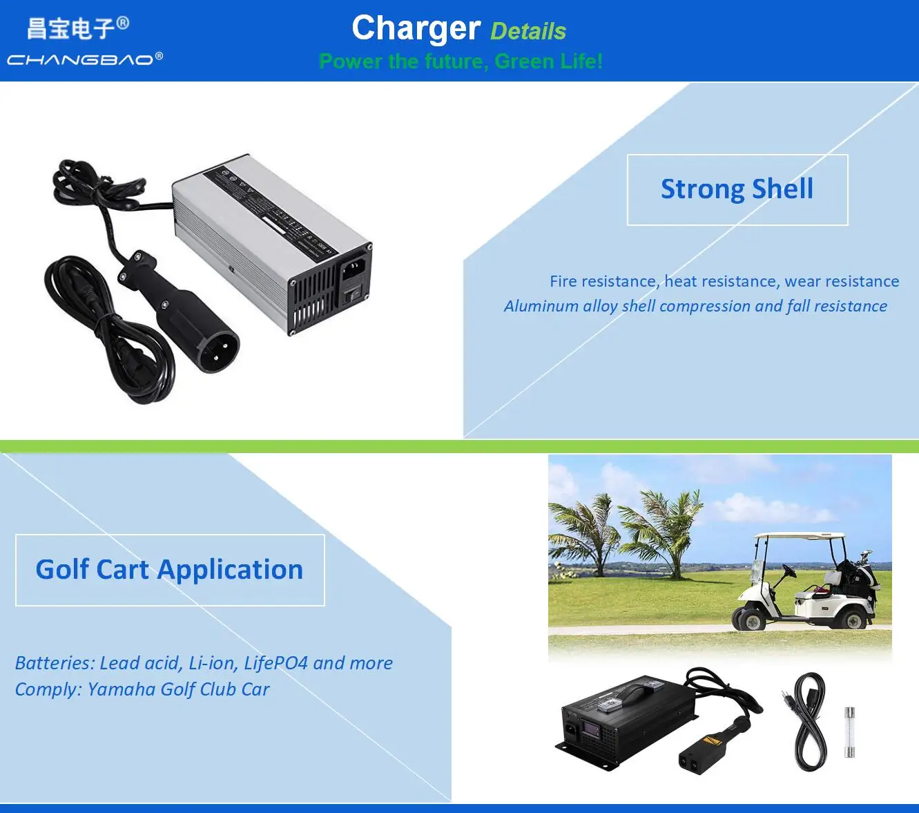 2). Compatible with Electric Car, Sightseeing Car, E-bike, Electric Golf Cart, E-Motocycle, E-Patrol Car, E-forklift, E-boat, E-Cleaner, E-sooter, E-torist Coach, Robot and more