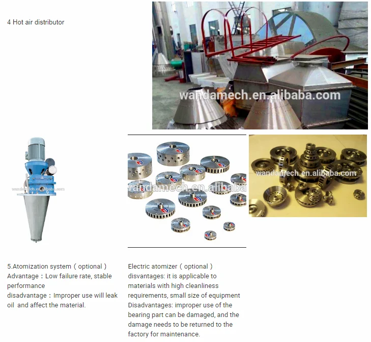 After filtering and heating, the air enters into air distributor on top of the Drying Equipment. The hot air enters into the drying tower spiral form and uniformly. By .passing through high-speed centrifugal atomizer on top of tower, the material liquid will rotate and be sprayed into the extremely fine mist liquid beads. Through the very short time of contacting with heating air, the material can be dried into final products. The final products will be discharged continuously from the bottom of drying tower and from cyclone separator.