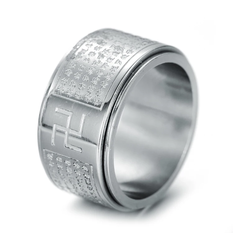 New Style WHOLESALE Men Stainless Steel 18K Gold Rotatable Scripture Finger Ring