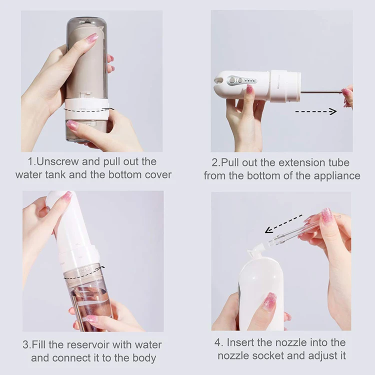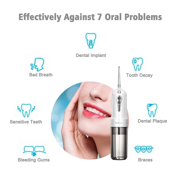 Color Box Packaging | 1*oral irrigator, 1*USB cable, 1*manual, 1*travel bag, 3*standard nozzle, 1*periodontal nozzle, 1*nasal nozzle. | ||||