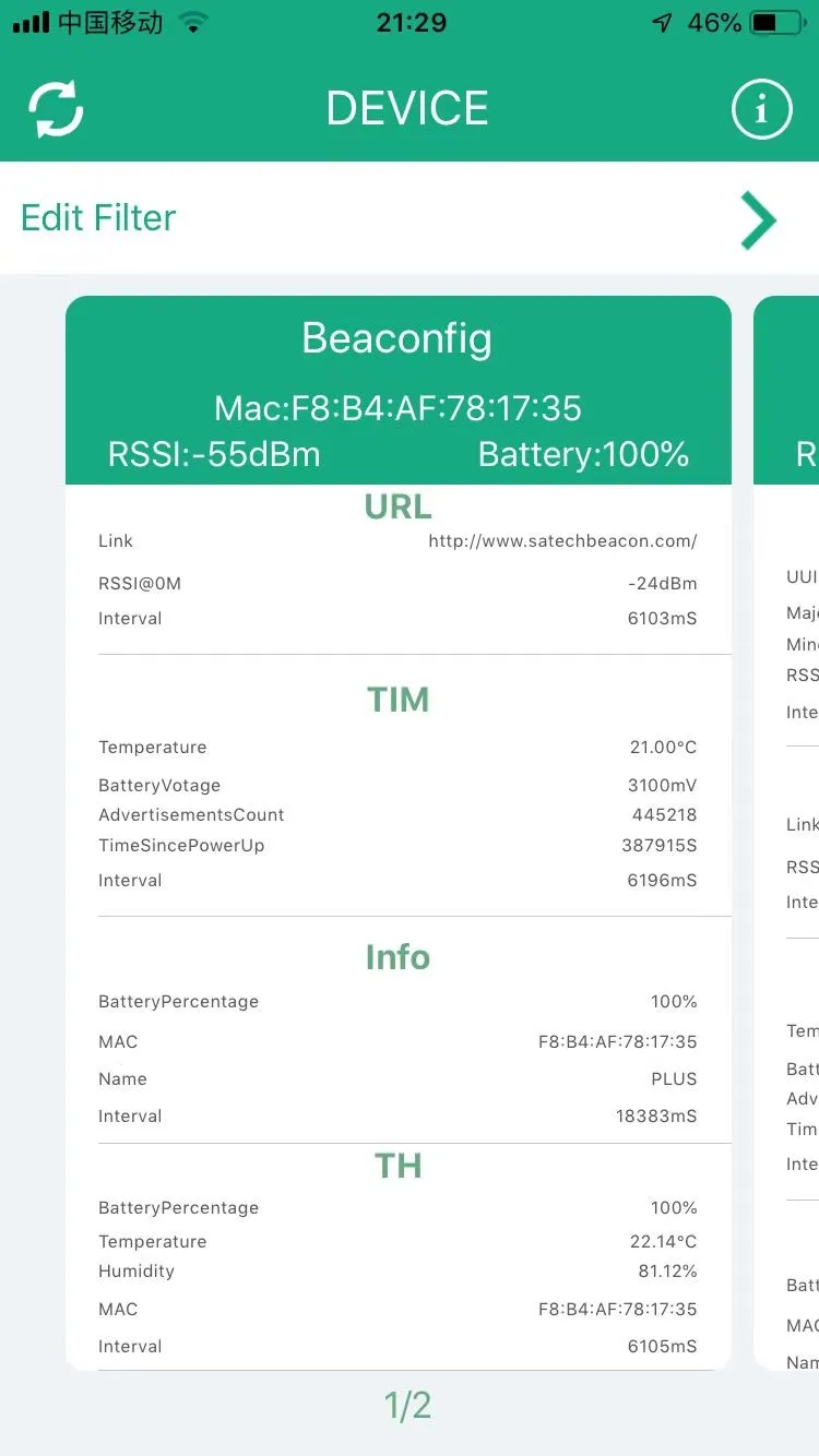 | Broadcasting Formats | iBeacon, UUID, URL, TLM, ACC, T & H, etc. |