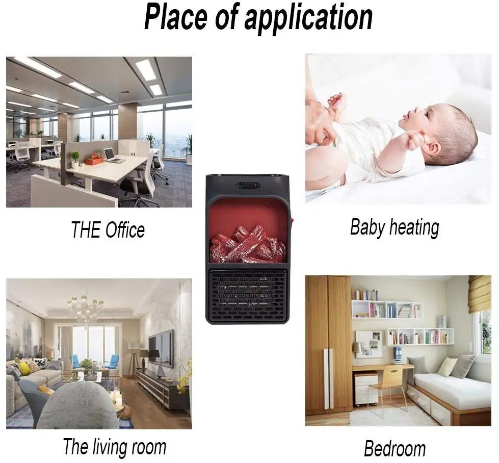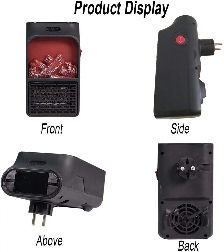 900W Mini Flame Heater Fan Electric Remote Control Fireplace Timer Space For Home/Office/Travel