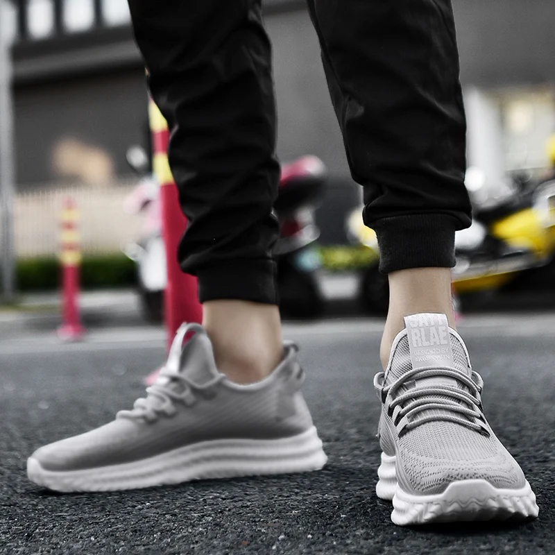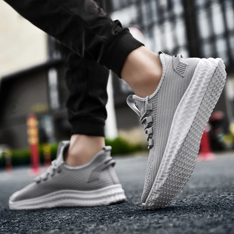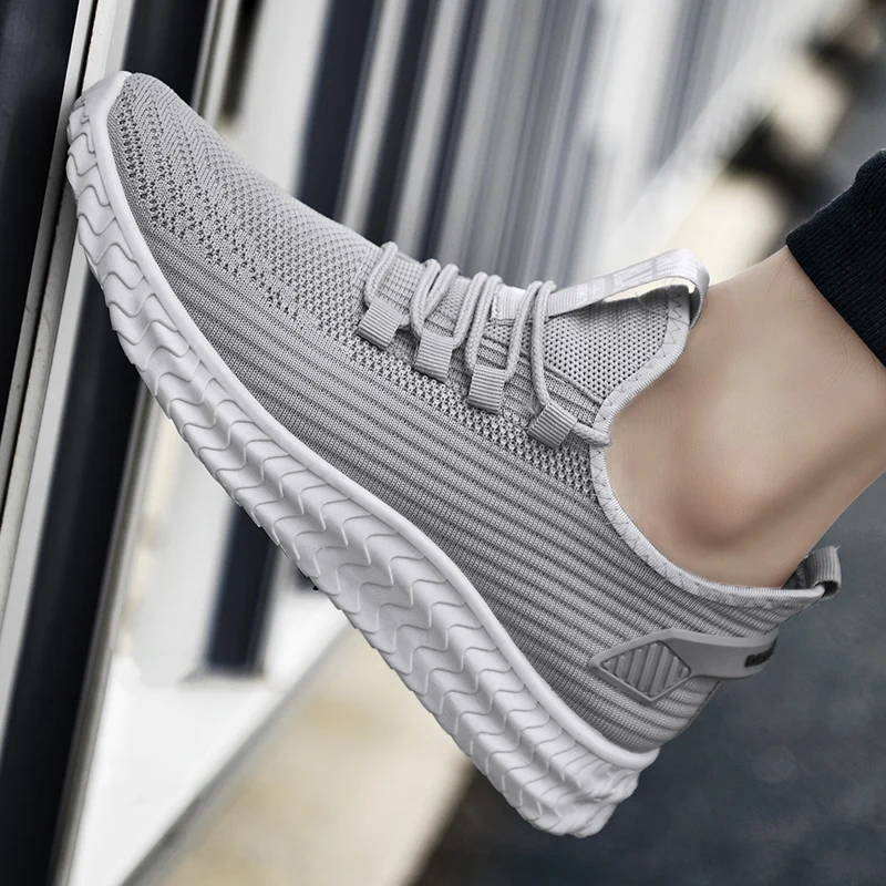 grey casual shoes lace up men fly knit shoes lightweight comfortable breathable walking sneakers tennis | ||||||||
