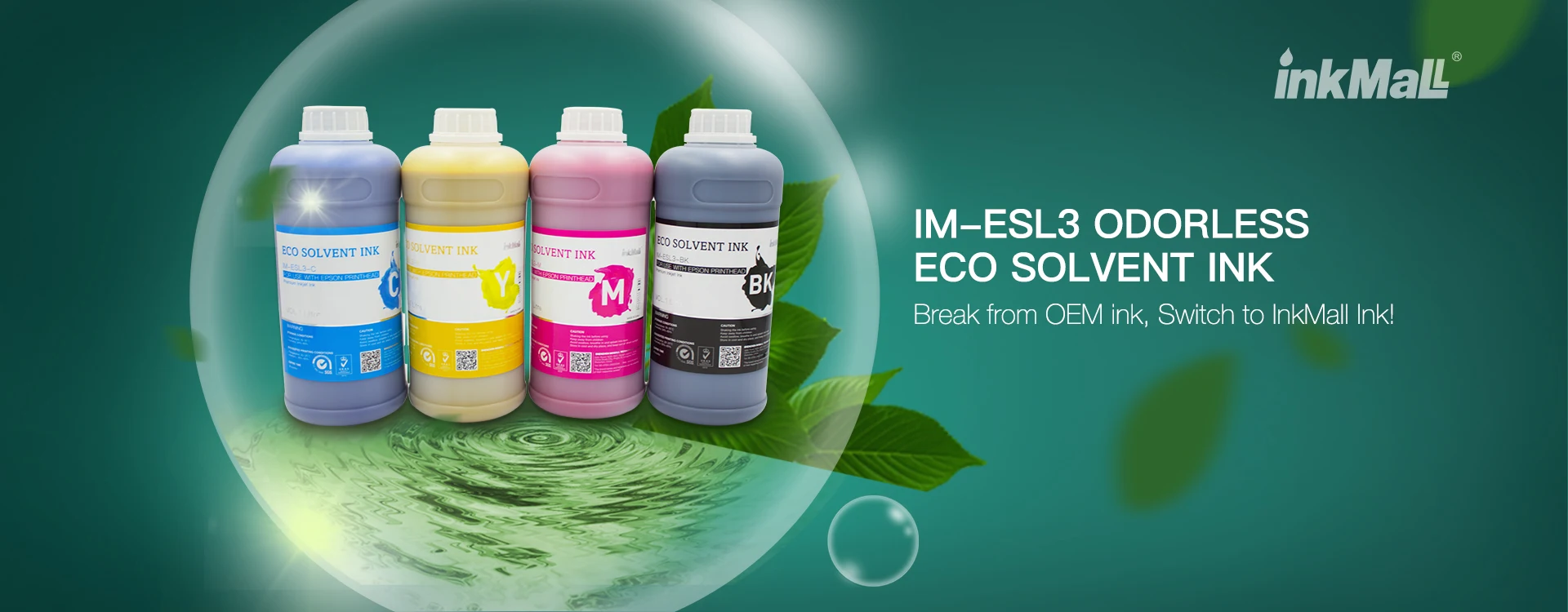 A major benefit of INKMALL Eco Solvent-based ink is the extended printhead life and limited need to regulate the surrounding airflow. IM-ESL3 is a range of Eco solvent based inks formulated as a high quality, lower cost to OEM brand original inks.