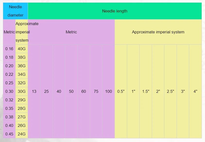 Product diameter | φ0.18mm-φ0.35mm | Needle lengh | 7-75mm | ||