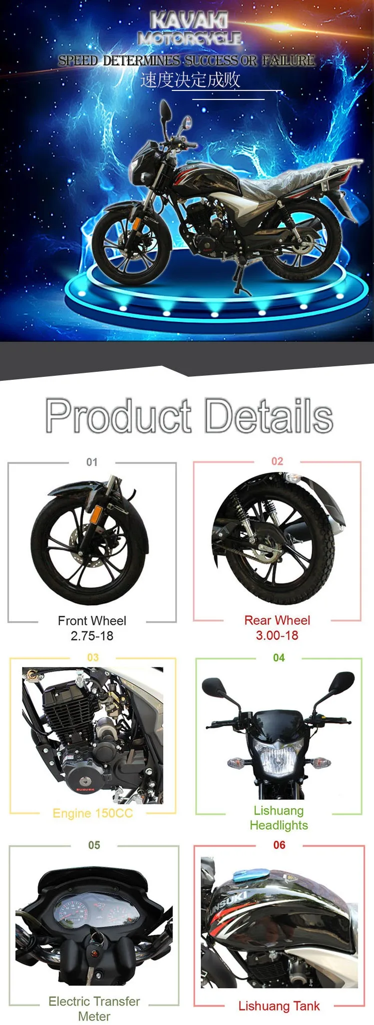 As one of biggest professional manufacturers of motorcycle, Kavaki has gathered research and development, production, sales in the integration. Main product of KAVAKI is from 50cc to 300cc series, which includes tricycle,motorcycle,E-bike,engine,spare parts.There are total 300 kinds of product. Main market:Africa, Middle-East, South America, Asia and other areas.