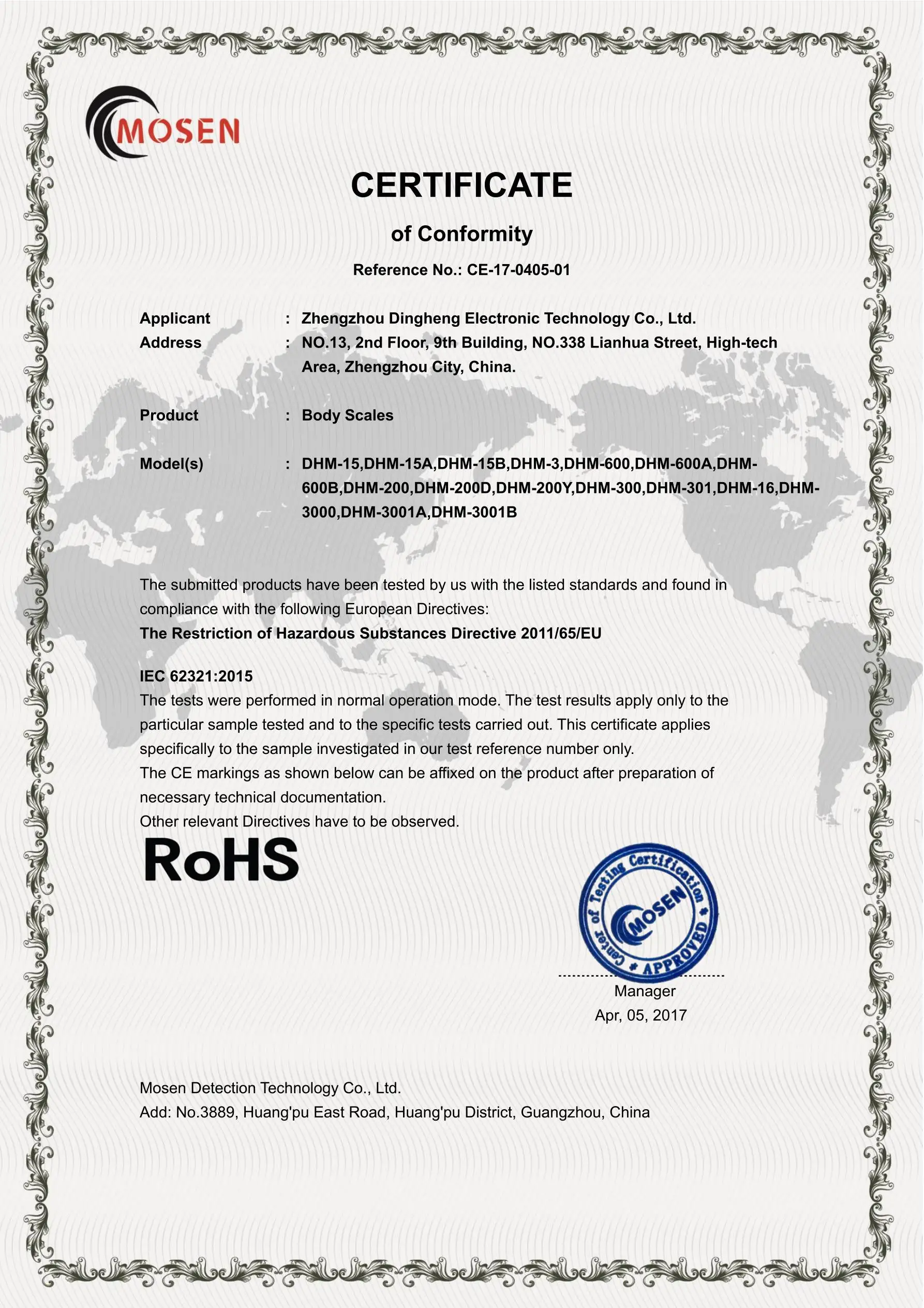 Zhengzhou Dingheng Electronic Technology Co., Ltd is located in Zhengzhou Hi-tech Industrial Development Zone, Zhengzhou, Henan, China. It is a high-tech enterprise specialized in electronic products. The electronic scales for human beings researched and developed by our company have passed many certifications, such as CE, ROSH and so on, and enjoys high reputation in similar markets both at home and abroad because of its high quality and high reliability. The products are sold throughout the country and exported to Russia, Australia, Southeast Asia, the Middle East, the Americas, Africa and other countries and regions, and widely used in supermarkets, hospitals, schools, physical check-up centers, gymnasiums, gyms, public health check-up systems and various physical check-up places. All the technical indexes of the products rank first among similar products.