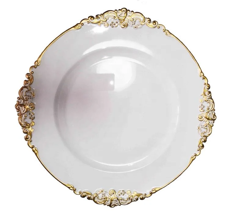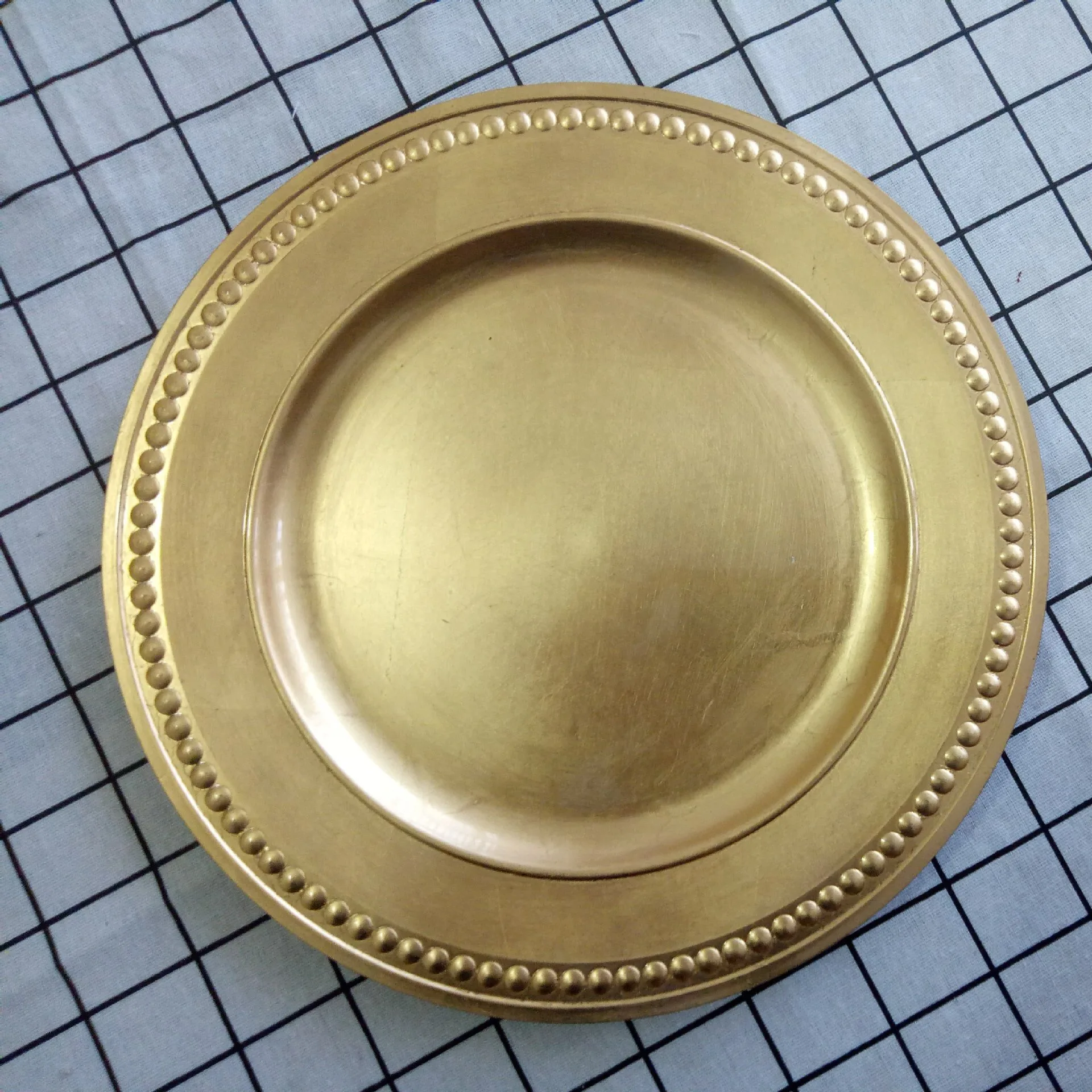 New Design 13 Inch Wedding Gold Beaded Plastic Charger Plates In Wholesale