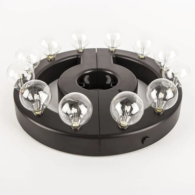 The battery powered umbrella lights is perfect for patio umbrella table sets. Each light features 2 panels with 6 LED Bulbs in each panel so it will easily light up the area under and around your patio umbrella. To activate the umbrella light, all you have to do is install 4 AA batteries (not included), separate the two halves of the unit, place it up on your umbrella pole at a desired height, and push it back together, then press the power button to turn on the lights and off.