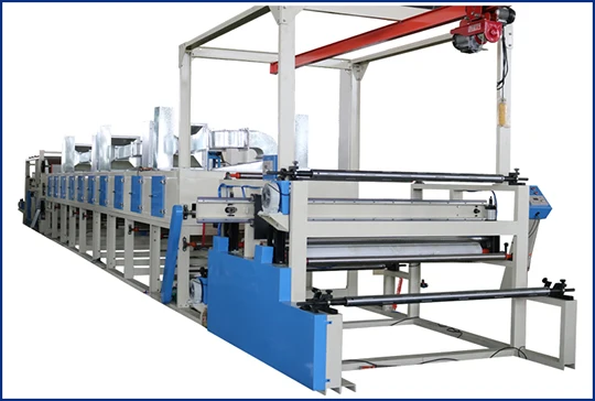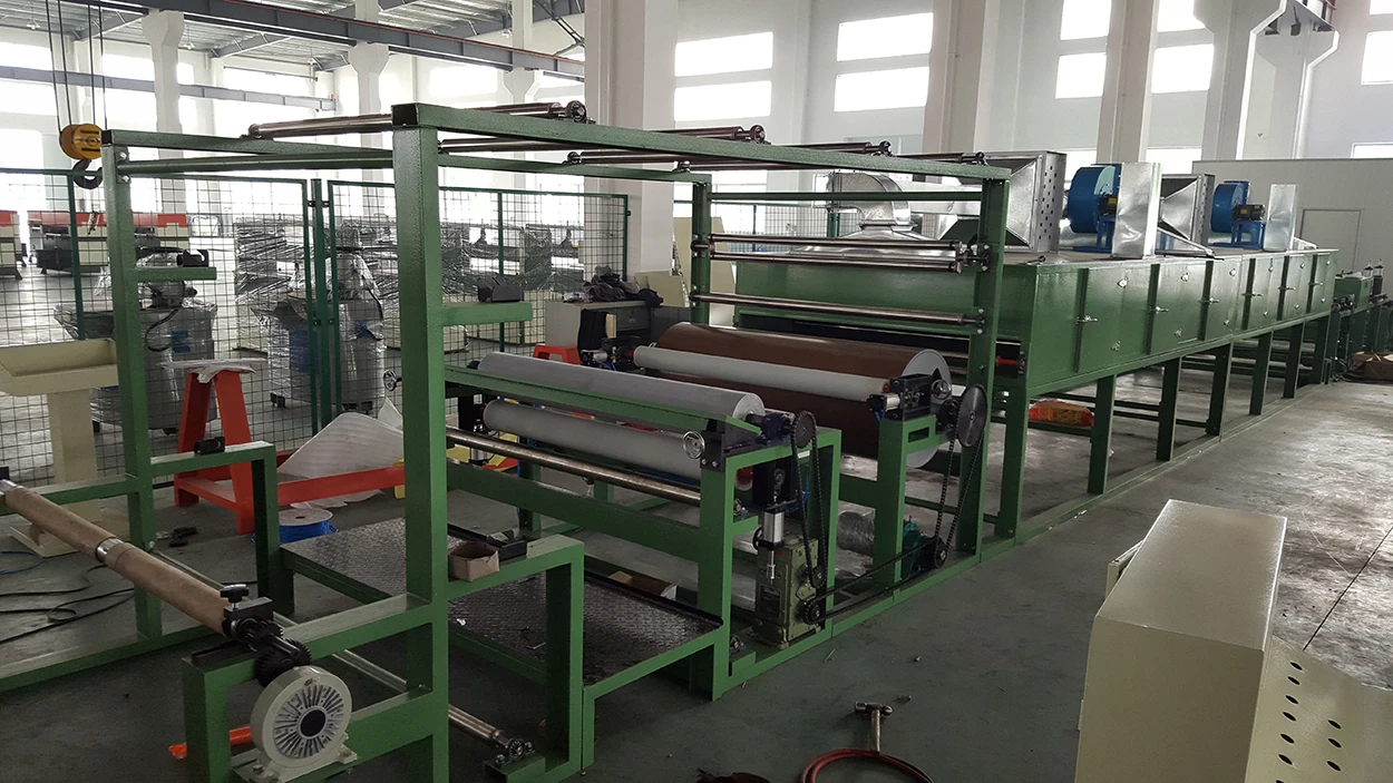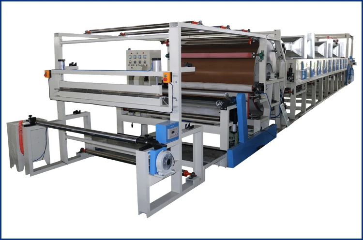 1. It uses water-based glue or oil-based glue to coat on the material surface,to laminate sandpaper with flannelette after glue is spread on sandpaper,then pressed by press roll, fed into the dryer for drying, and then wound up by a winder. |