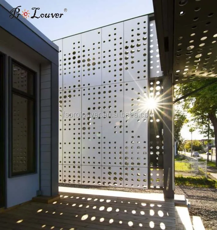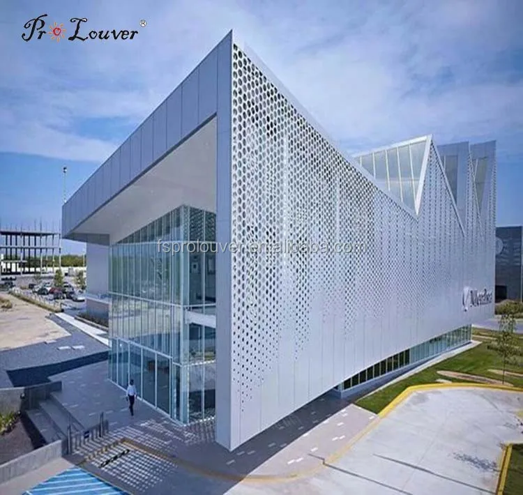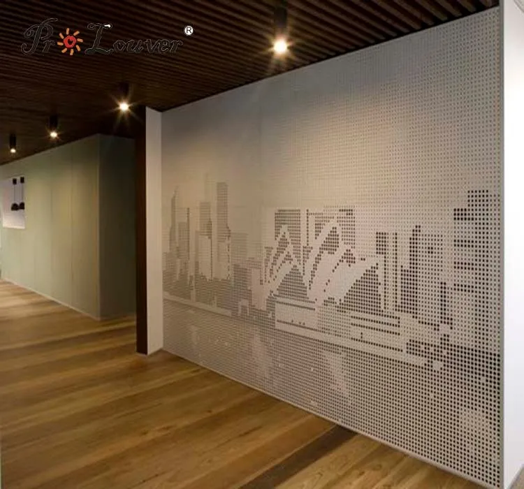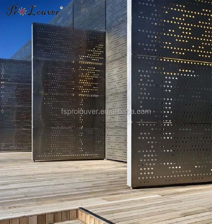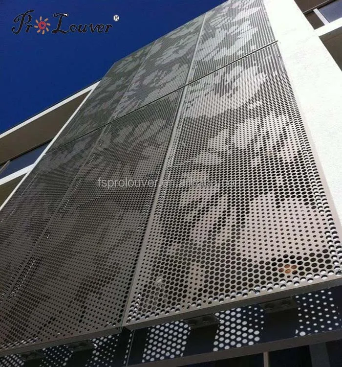 PROLOUVER Anodized/AkzoNobel powder coating/PVDF perforated metal panel used for facade curtain wall,sun screen,handrail,interior decoration, screening. And it can be hollowed according to your sample or CAD drawing. It can also be folded, curved according to request.