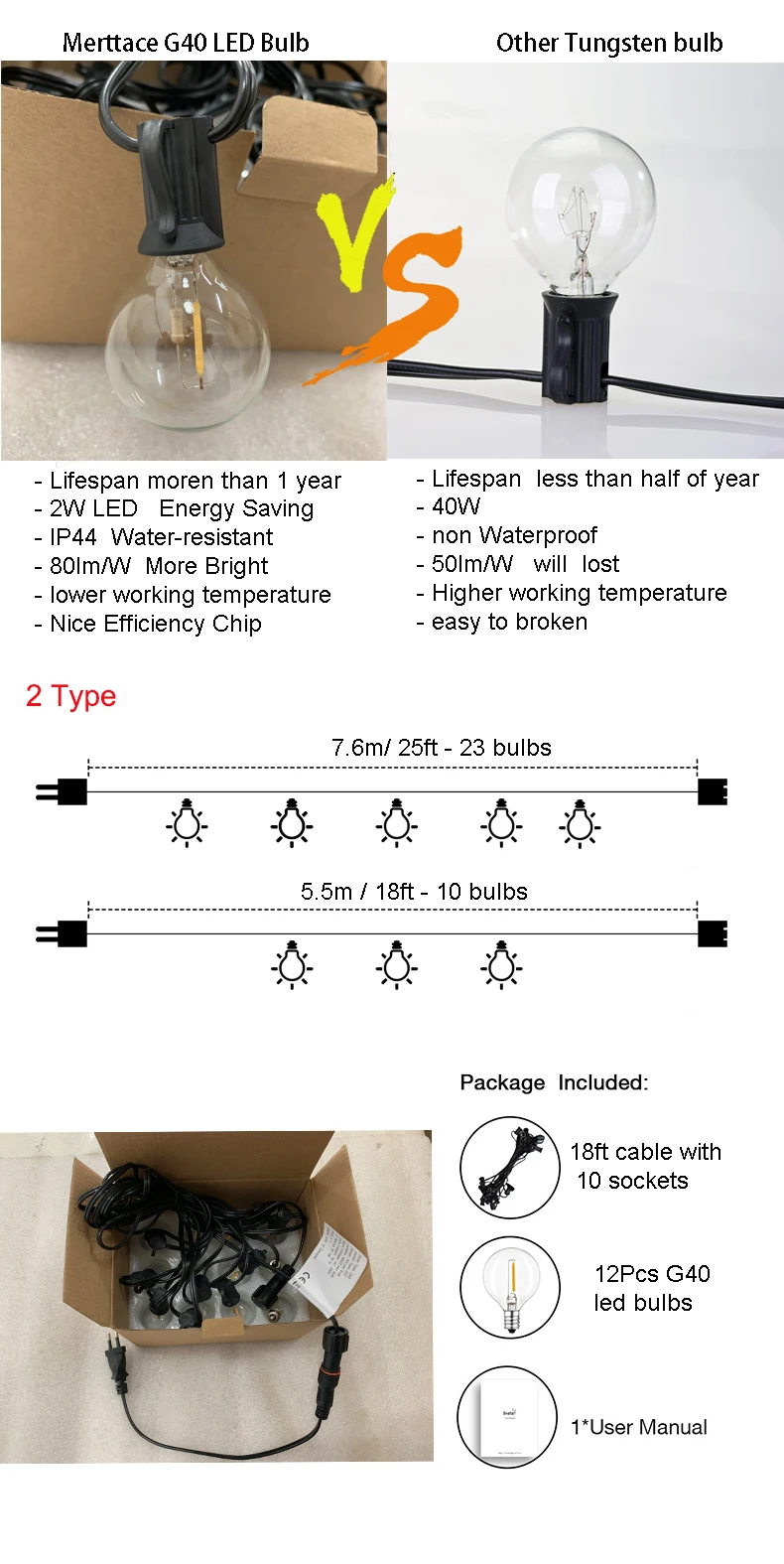 Material | Glass bulb + pvc wire |