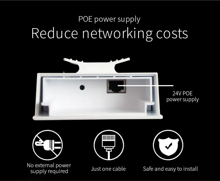 WQ-580L supports 24V power supply, this makes it more adaptable to the outdoor installation environment. we just need one network cable to connect CPE and PoE adapter. PoE adapter power WQ-580L wireless CPE, data comes from Lan port to PoE adapter.