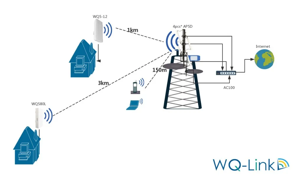 5.8GHz frequency band makes WQ-580L to transmit longer than 2.4GHz, through out comes to 300Mbps. 5.8GHz signal has strong anti-interference ability, no need to worry about signal loss
