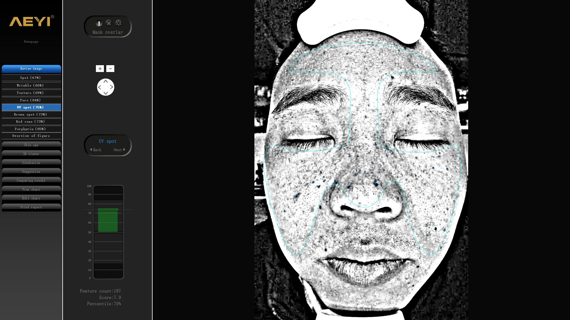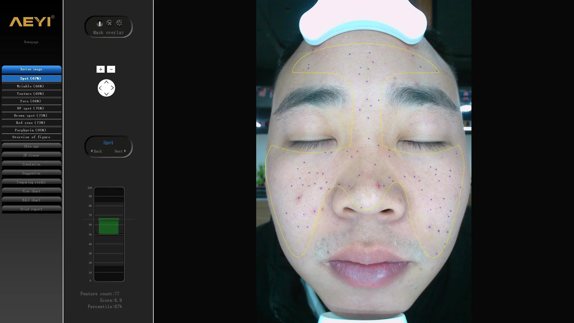 1. Detection of spots, texture, pores, wrinkles, UV spots, brown spots, skin inflammation, purple detection