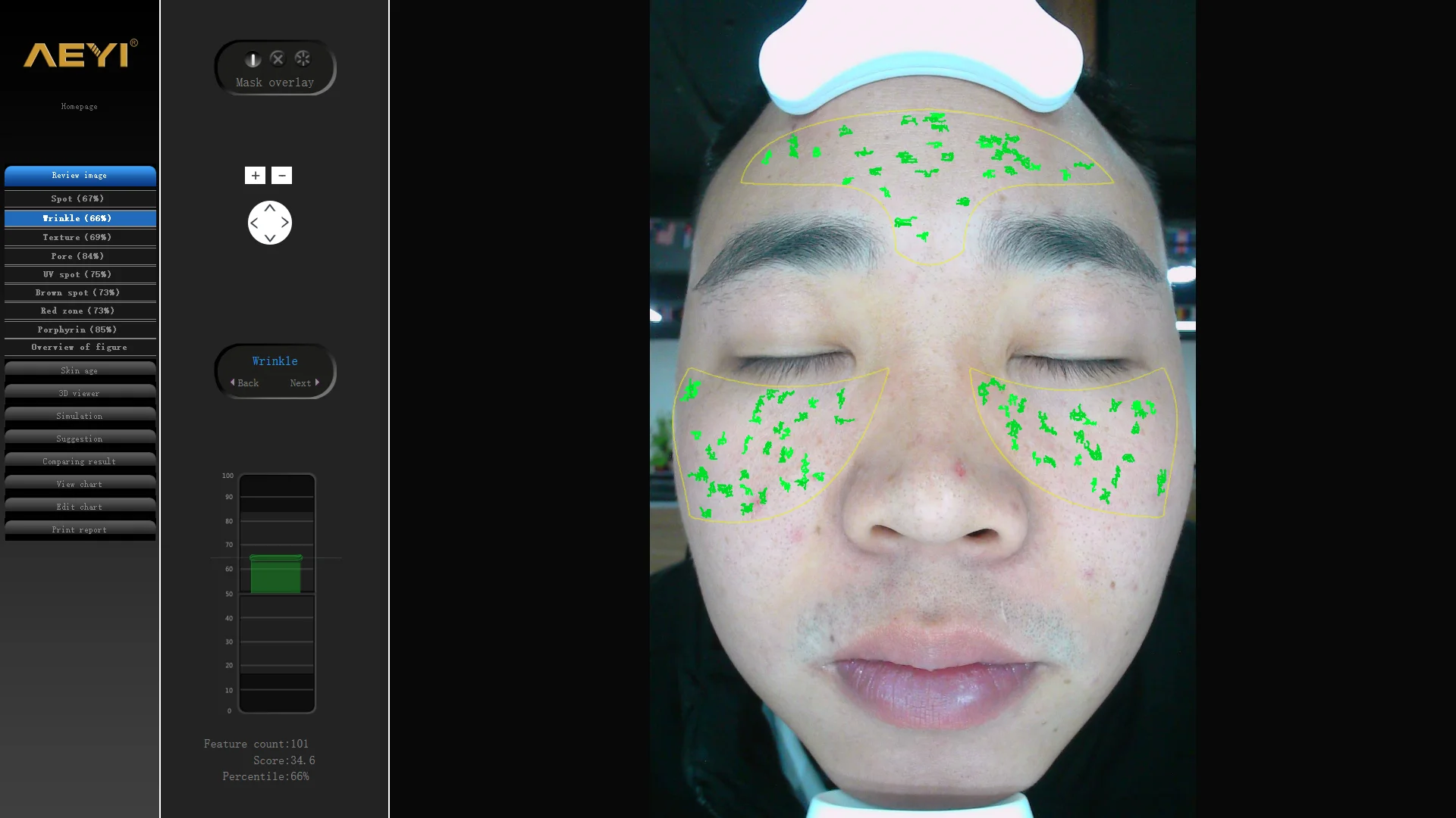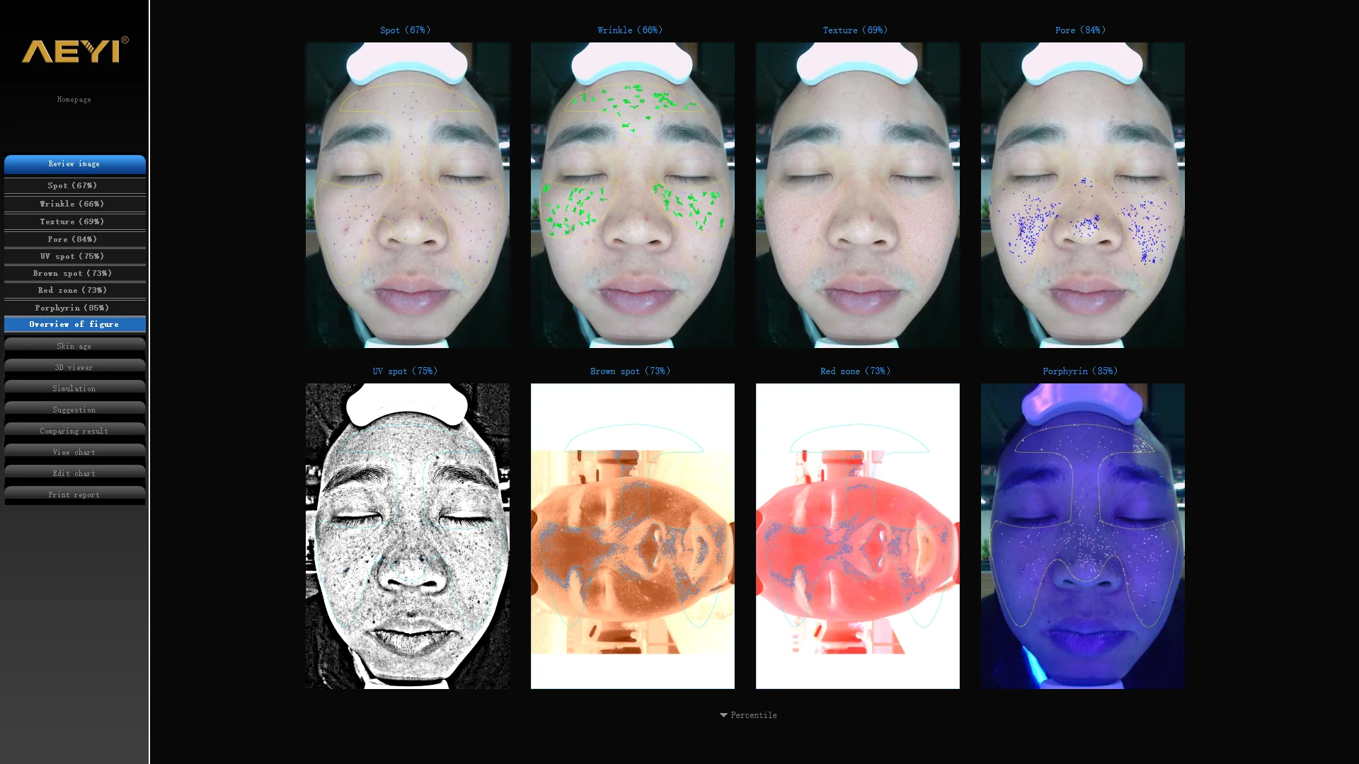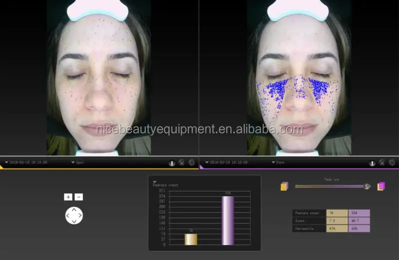 * Testing different skin problem, like Wrinkles, texture, UV, spots, purple, pores, pigments, etc.