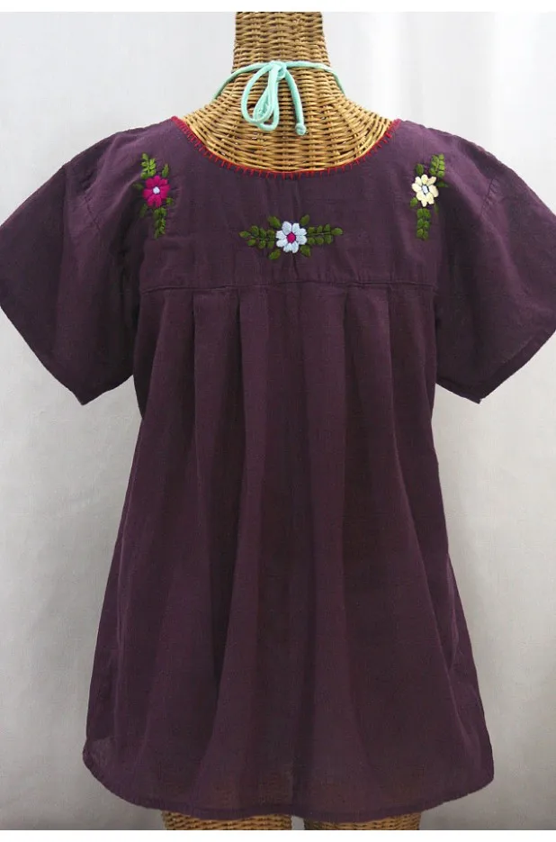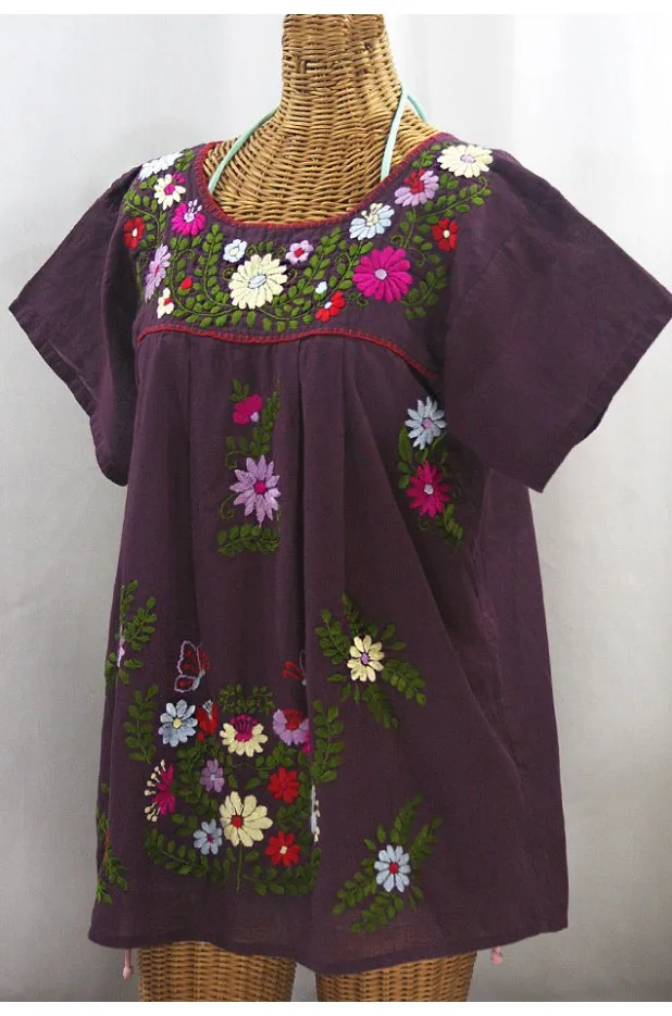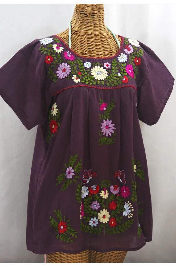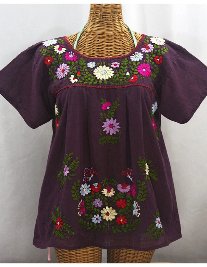 STC134 Maroon fabric with colorful sunflower embroidery blouse.