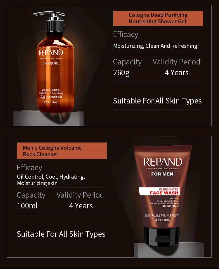Cologne Deep Purifying Anti-Dandruff Hair Shampoo and Nourishing Shower Gel and Daily Facial Cleanser |